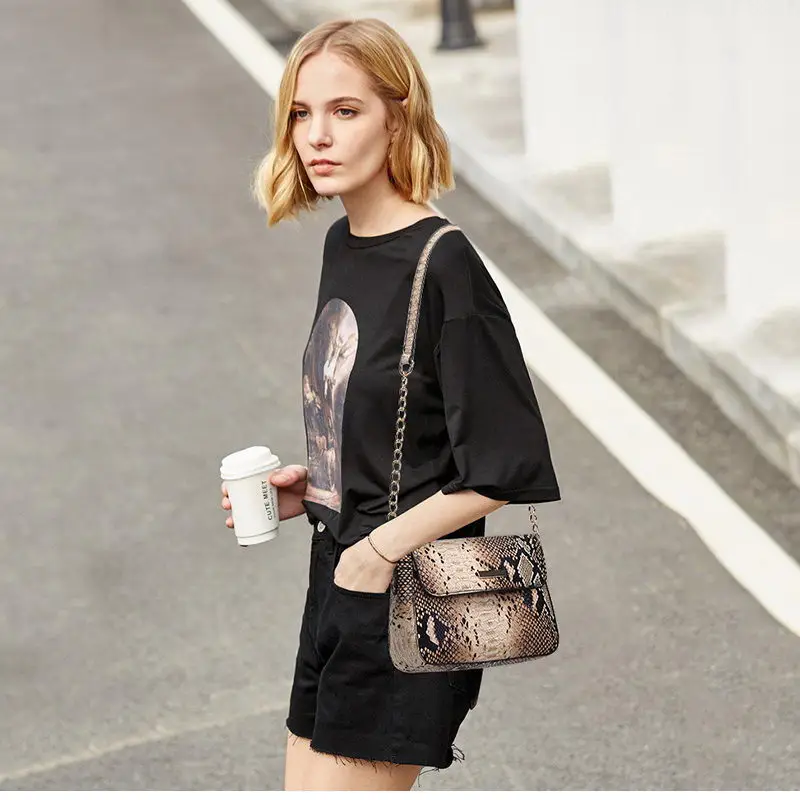 Snake PU Leather Bags Women Chain Shoulder Bag Cross Body Bags For Women