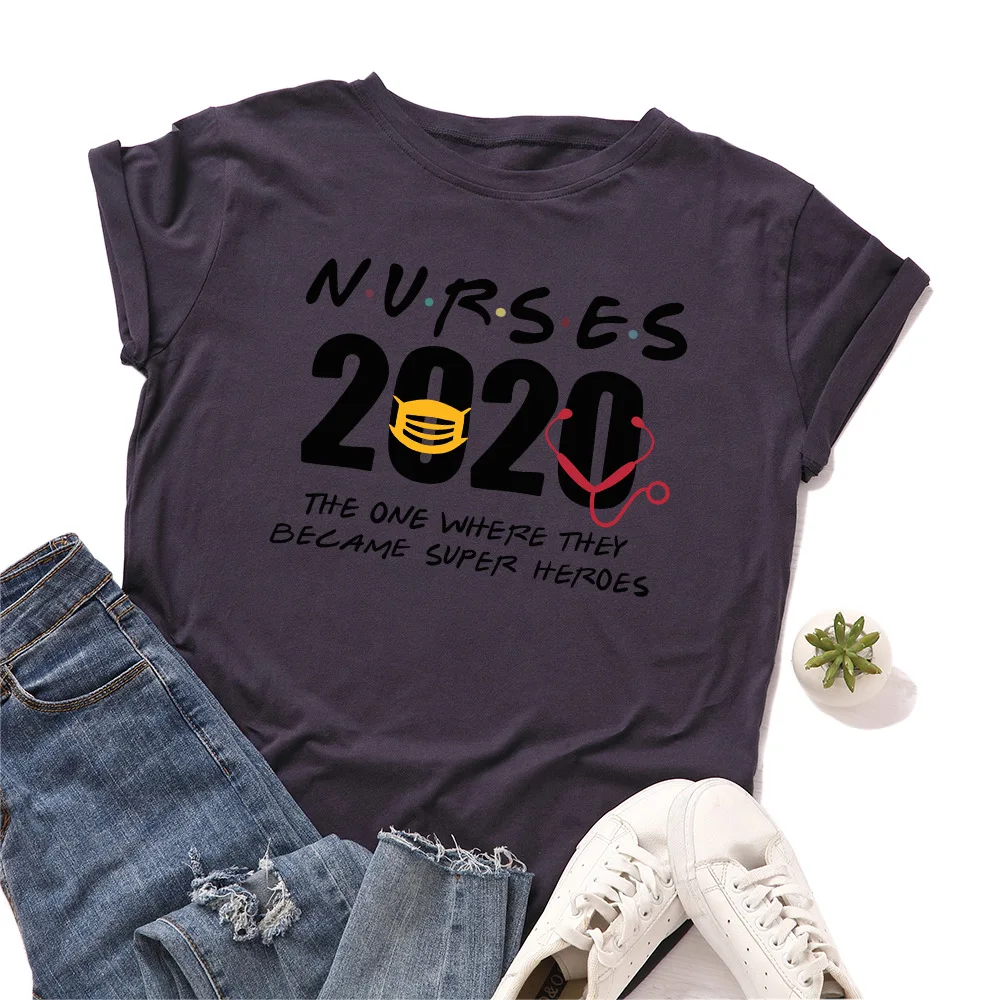 Women Cotton T-Shirts Special Print 2020 Nurses Super Heroes Tee Tops